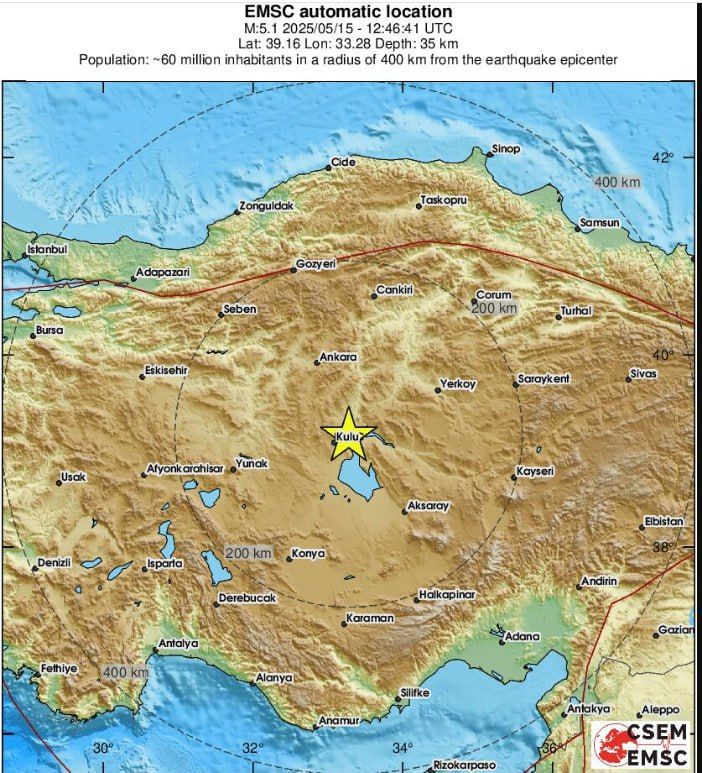 Эпицентр землетрясения находился в районе Кулу города Конья.
