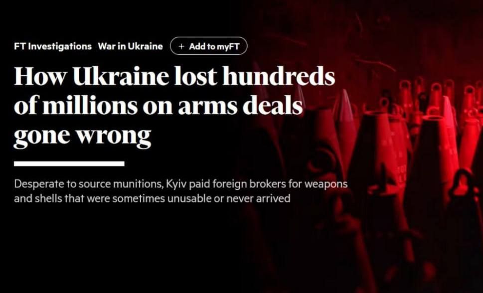 Украина потеряла сотни миллионов долларов при закупке оружия у ненадёжных поставщиков, - FT.