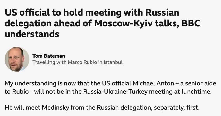 Директор по политическому планированию Госдепа Майкл Энтон, представляющий США на переговорах в Стамбуле, проведет отдельные переговоры с помощником президента РФ Владимиром Мединским. Об этом сообщает BBC со ссылкой на источники.