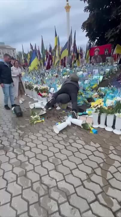 На Майдане решили подраться. Разбили портреты, все попереворачивали.