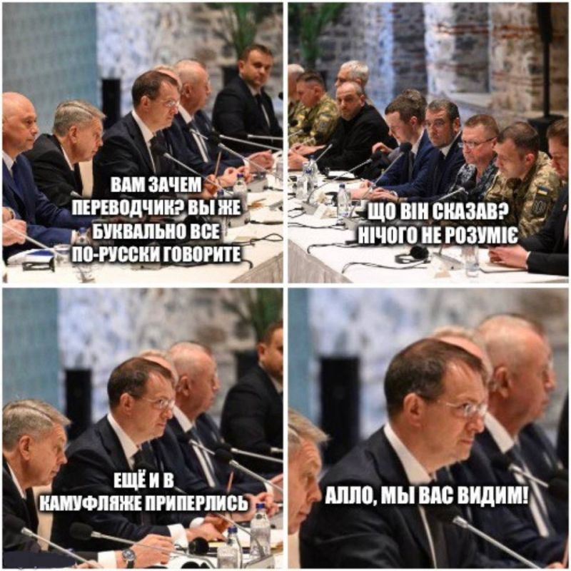 Главный мем переговоров. Сообщения о том, что на встрече делегаций России и Украины работали переводчики не оставили равнодушными творческих россиян.