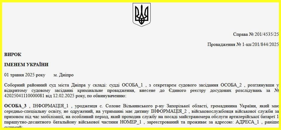 Документ гласит, что позже солдата задержали и тот раскаялся, признав вину — однако вернуть смог только 1,5 млн грн, так как около 900 тысяч уже потратил на собственные нужды.
