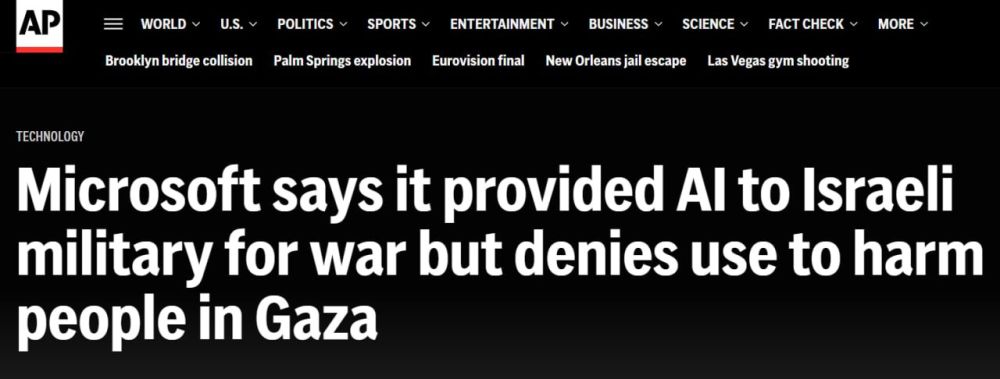 Microsoft заявила, что предоставляла искусственный интеллект израильским военным для ведения войны, но отрицает его использование для нанесения вреда жителям Газы, - Associated Press.