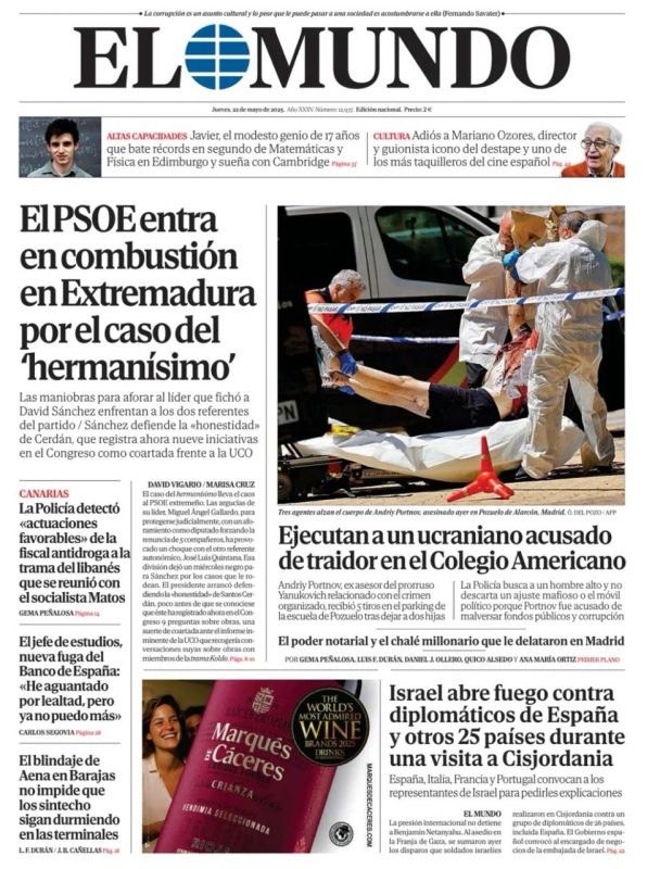 Если вы думаете, что наглый расстрел украинского политика Андрея Портнова среди белого дня в элитном районе Мадрида на глазах у школьников стал главной новостью сегодняшней испанской прессы, то вы заблуждаетесь.