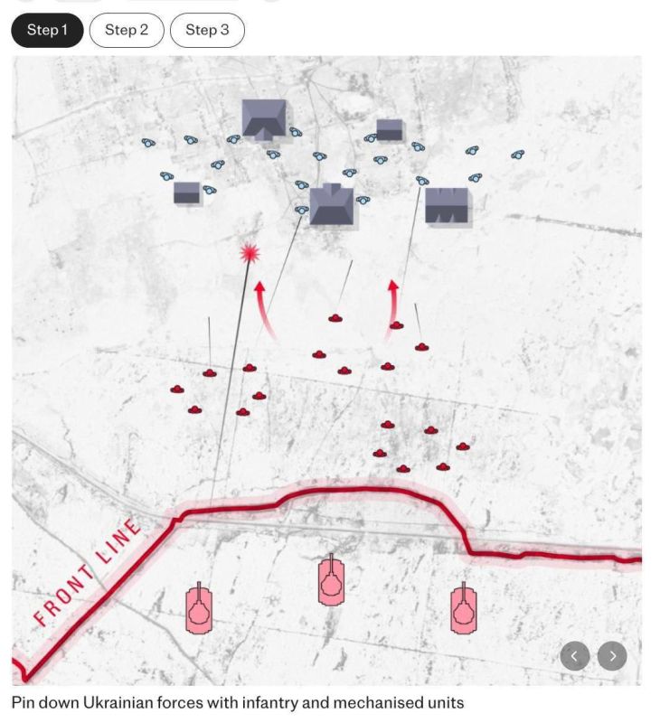 Так, российская армия добивается продвижения на линии фронта, комбинируя штурмовые действия пехотой, атаки беспилотниками и подавление позиций противника планирующими бомбами.