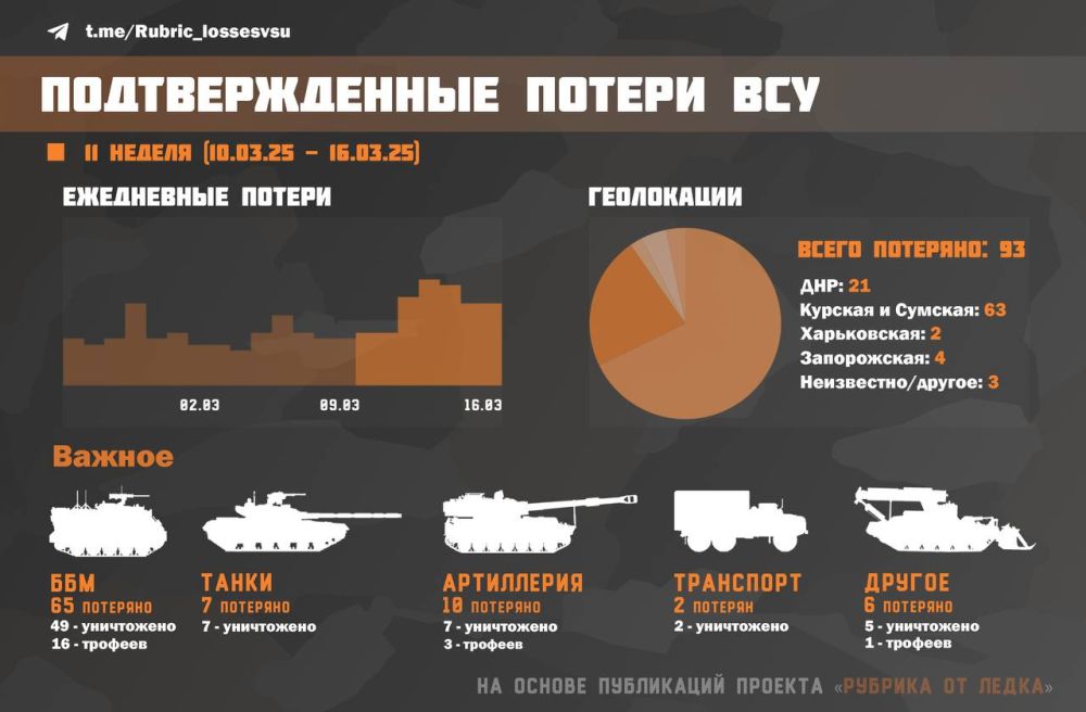 Инфографика была создана на основе: опубликованных каналом 'Рубрика от Ледка' визуально-подтвержденных потерь техники вооруженых сил Украины в зоне сво/кто.
