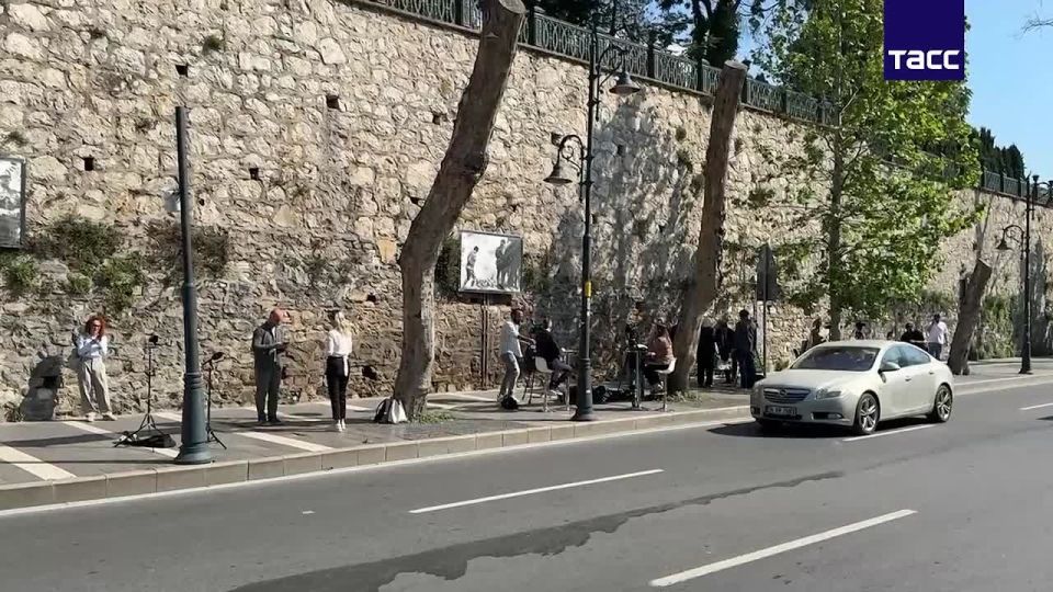 Более сотни журналистов ожидают начала переговоров РФ и Украины у дворца Чираган.