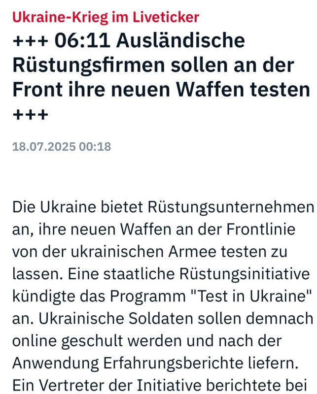 Украина предлагает оборонным компаниям Запада протестировать свое новое оружие на передовой украинской армией. Об этом Украина заявила в программе «Тест в Украине». А украинские солдаты должны пройти онлайн-обучение и предоставить затем отчеты об опыте использования. Представитель инициативы Киева сообщил о большом интересе к программе на конференции в Германии, но не раскрыл никаких подробностей. #докторсосновский