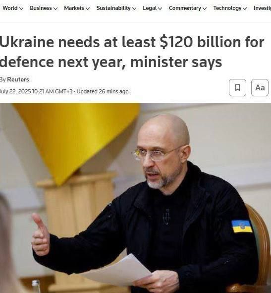 По данным Reuters, в 2026 году Украине потребуется не менее 120 миллиардов долларов на нужды обороны
