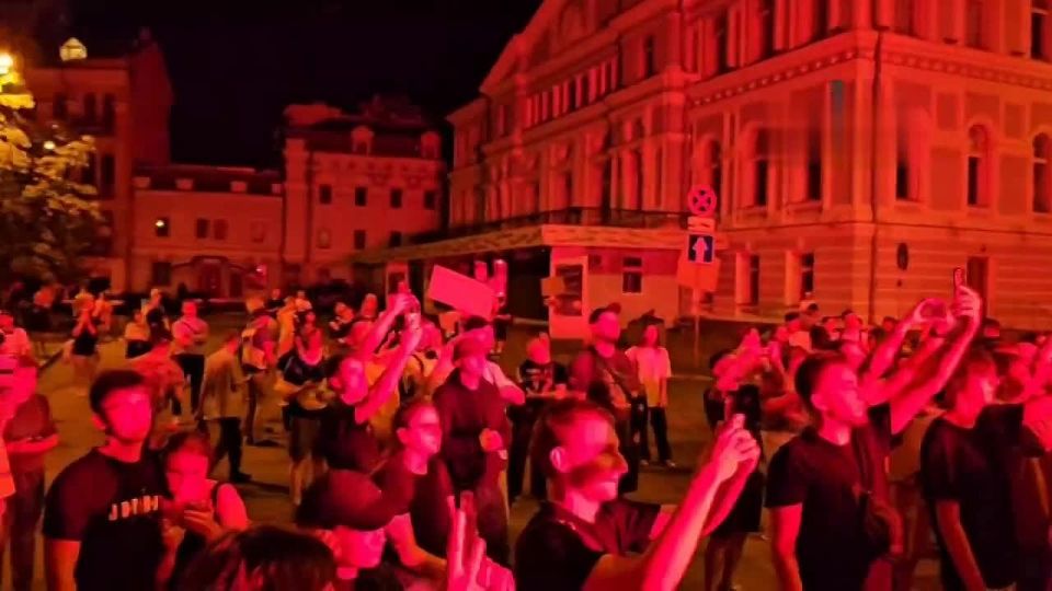 Файеры горят у офиса Зеленского на Банковой.