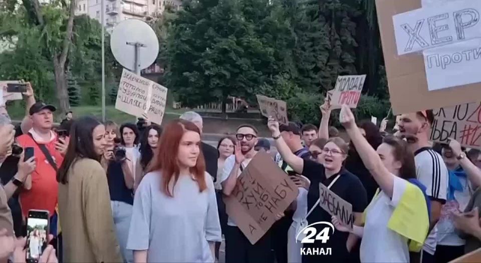 На Украине продолжаются митинги по поводу ситуации с НАБУ, проамериканскую депутата Безуглую, пришедшую похайпиться, прогоняют, она параллельно митингует против Сырского.