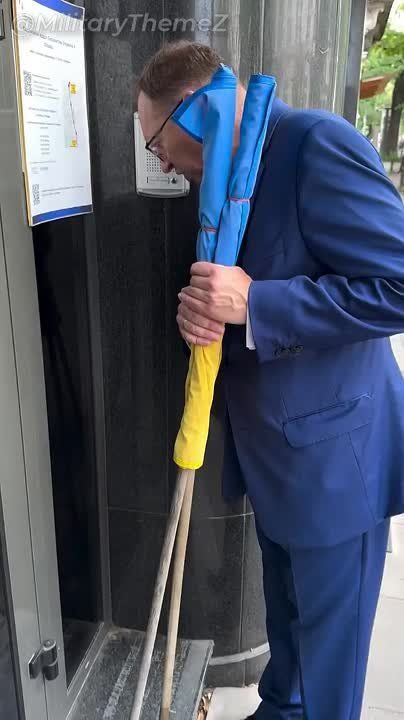 Посольство Украины не впустило польского политика Романа Фрица с украинскими флагами, снятыми с ратуши в городе Цешин.