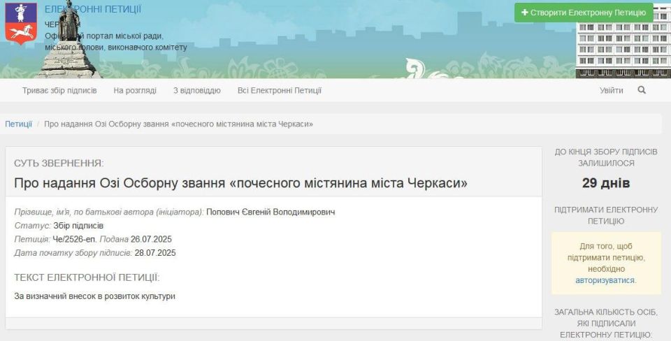 В Черкассах начался сбор подписей за присвоение легендарному рокеру Оззи Осборну звания почётного гражданина города.