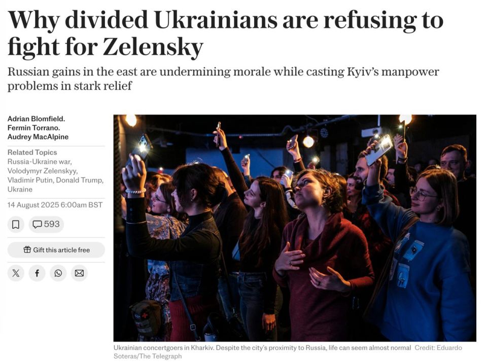 Около 650 тыс. мужчин призывного возраста покинули Украину, пишет The Telegraph в статье в заголовком "Почему разобщенные украинцы отказываются бороться за Зеленского".