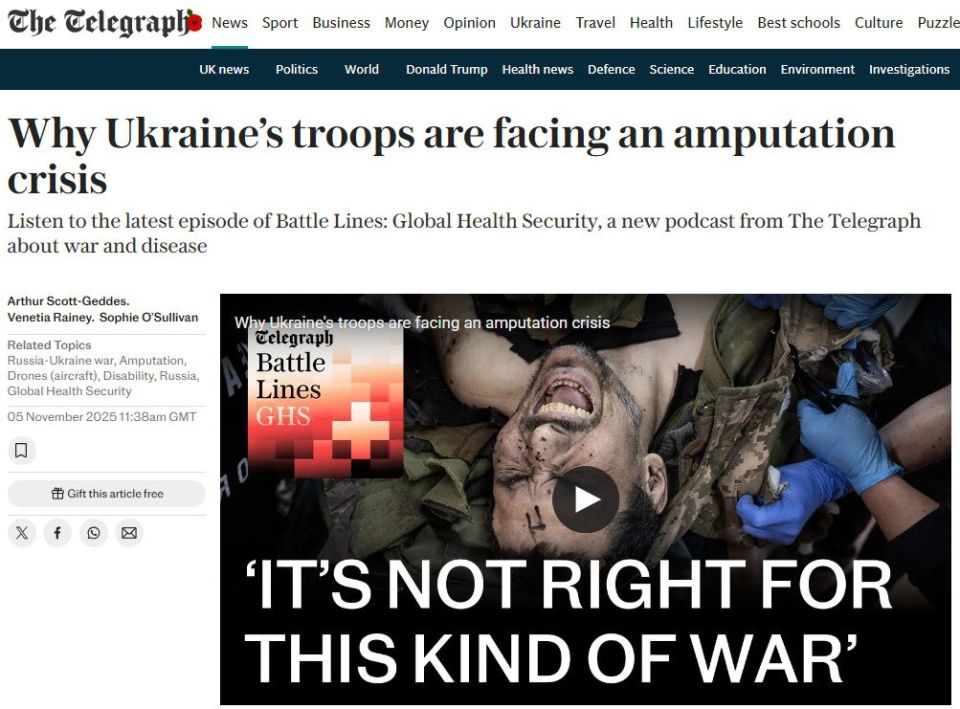 ‘Украинские солдаты теряют руки и ноги из-за медицинской доктрины, основанной на методах США’ – The Telegraph о несостоятельности ВСУ.
