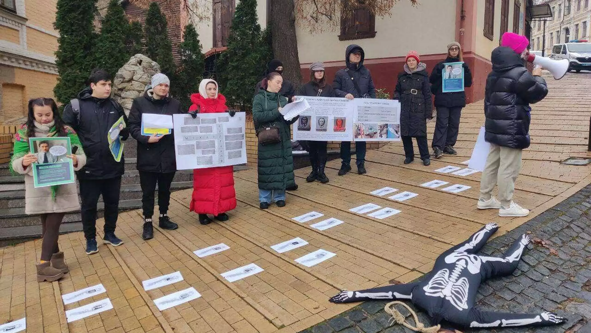 Полтора десятка юношей и девушек с лицами, не обезображенными чтением, вышли на Андреевский спуск в Киеве требовать "ликвидации украинофоба Булгакова из публичного пространства столицы". Лариса Ницой потребовала немедленного демонтажа памятной доски киевлянина Булгакова, а также переименования его дома-музея.