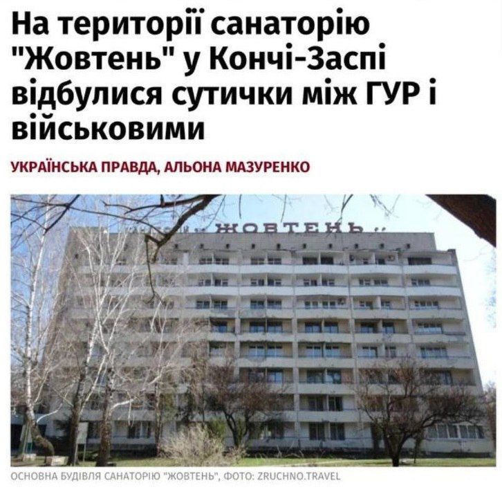 На Украине произошел вооруженный инцидент между сотрудниками Главного управления разведки (ГУР) и военнослужащими одной из частей. Конфликт разгорелся вечером 3 декабря на территории санатория «Октябрь» в элитном киевском поселке Конча-Заспа.