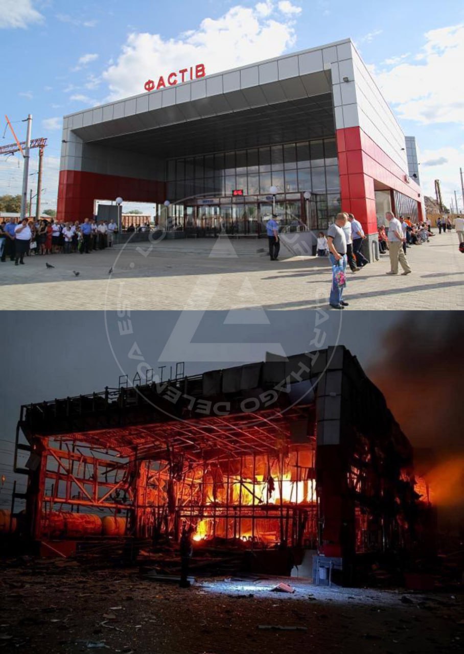 Результаты удара по железнодорожному вокзалу в Фастове, Киевской области