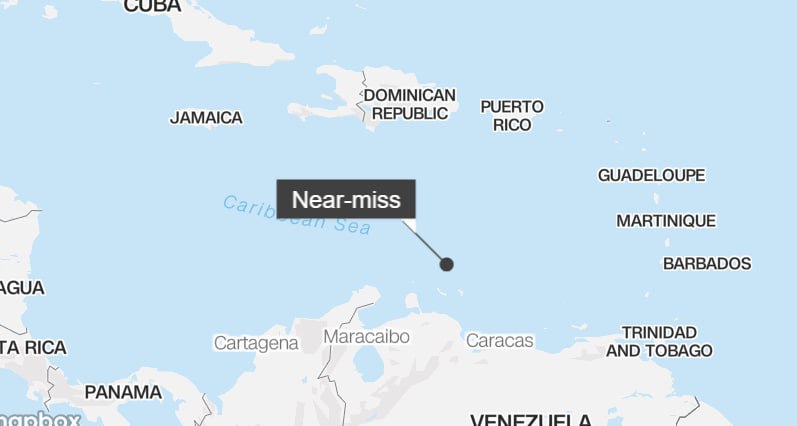 Пилоты бизнес-джета Falcon 900EX, летевшего c Арубы в Майами, сообщили о небезопасном приближении авиадиспетчерам на Кюрасао. Всё происходило на высоте в 7924 метра.