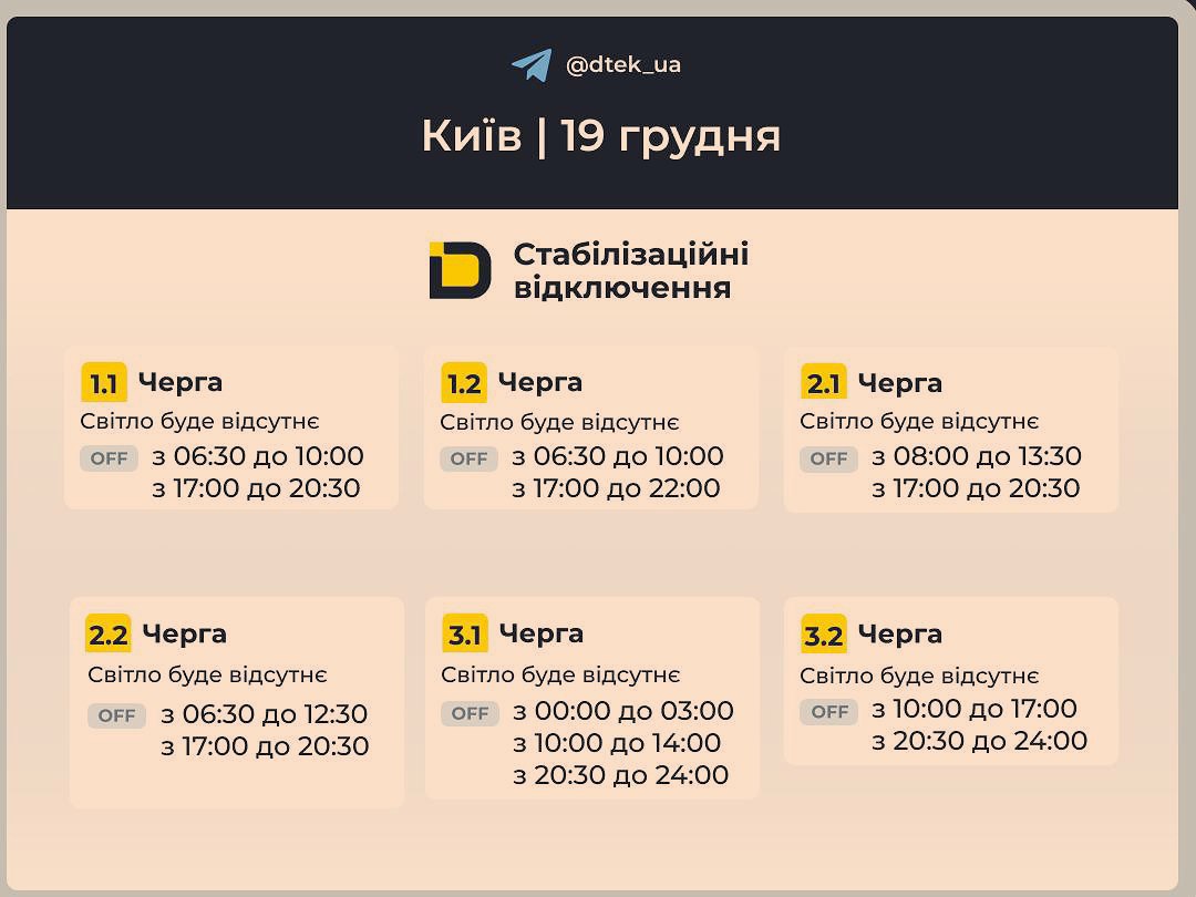 ДТЭК публикует новые графики отключения на завтрашний день. В среднем киевляне просидят без света половину дня.