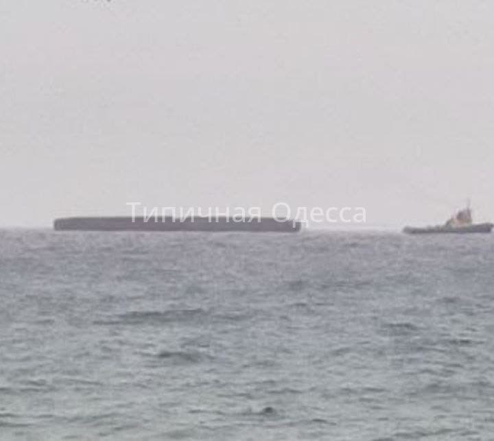 На фото, как утверждается, запечатлена буксировка сегмента понтонной переправы по Днестровскому лиману к месту установки.