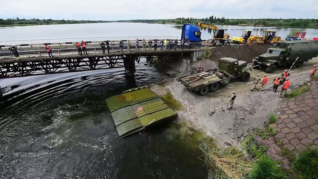 Новой переправы хватило на несколько часов, затем ее разбили "Герани". Военные навели еще три переправы и буксируют к Маякам части понтонов для замены разбитых.