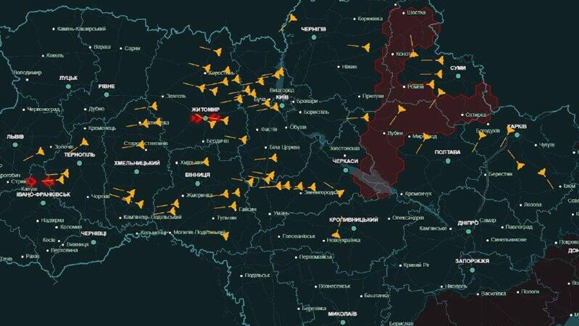 Украинские ресурсы публикуют карту дронов и ракет над Украиной