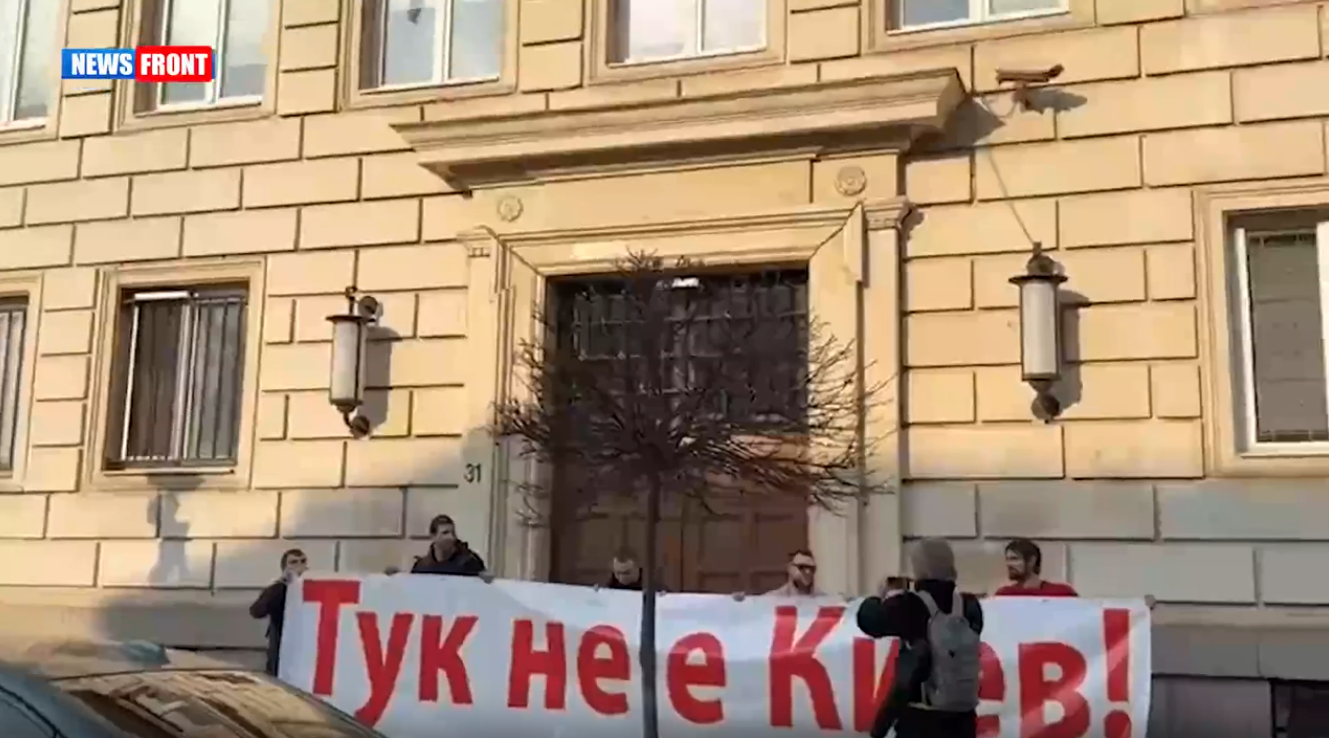 В центре Софии, на территории Столичной общины, активисты из движения «23 Сентября» и Фронта левых и социалистов вывесили транспарант с лозунгом «Здесь не Киев!»