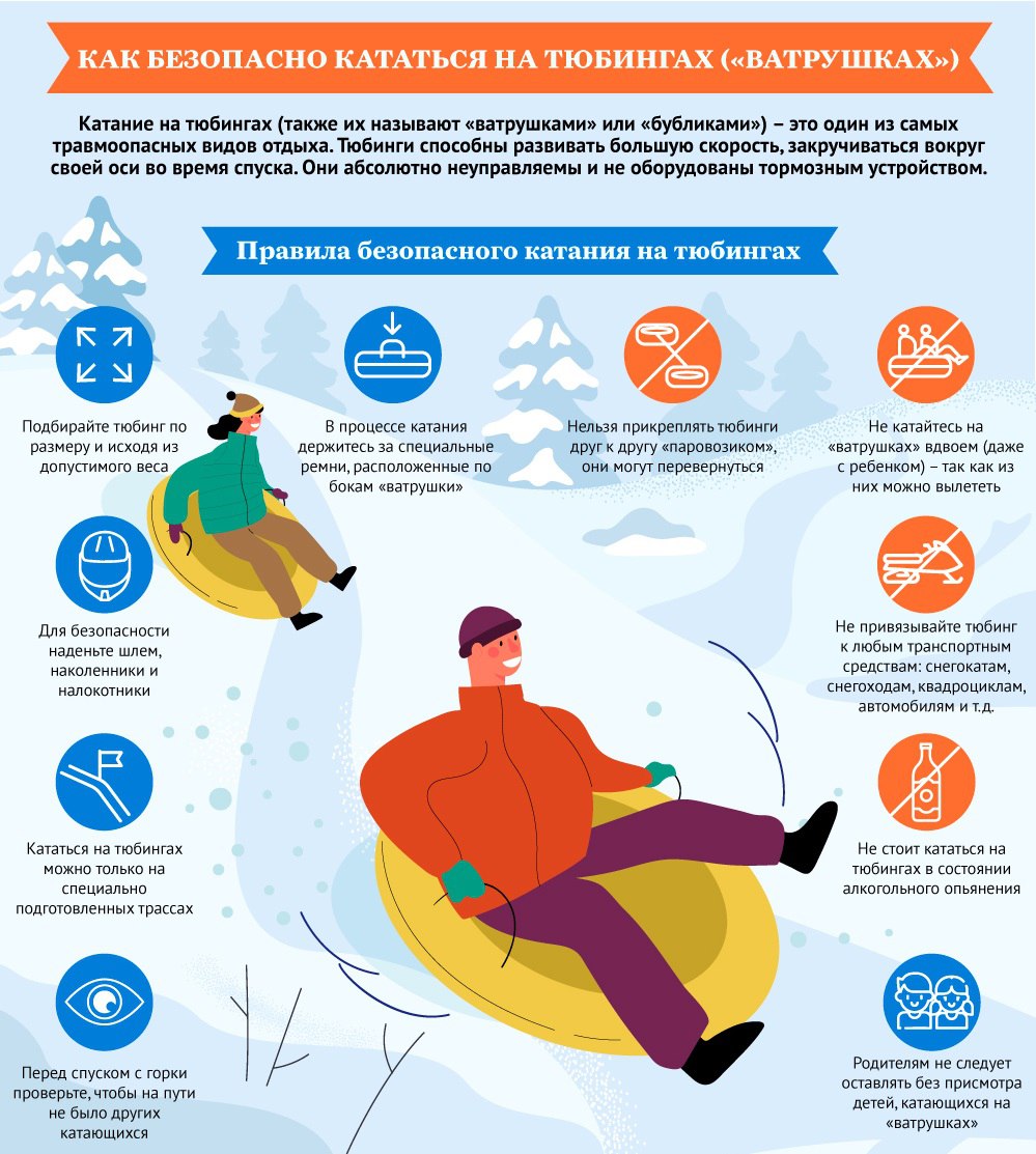 Чтобы катание на тюбингах приносило радость, следует строго соблюдать правила безопасного катания. Рассказываем подробнее в инфографике.