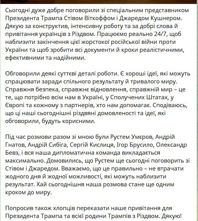 Зеленский сообщил, что вместе со своей делегацией поездил по ушам Кушнеру и Уиткоффу