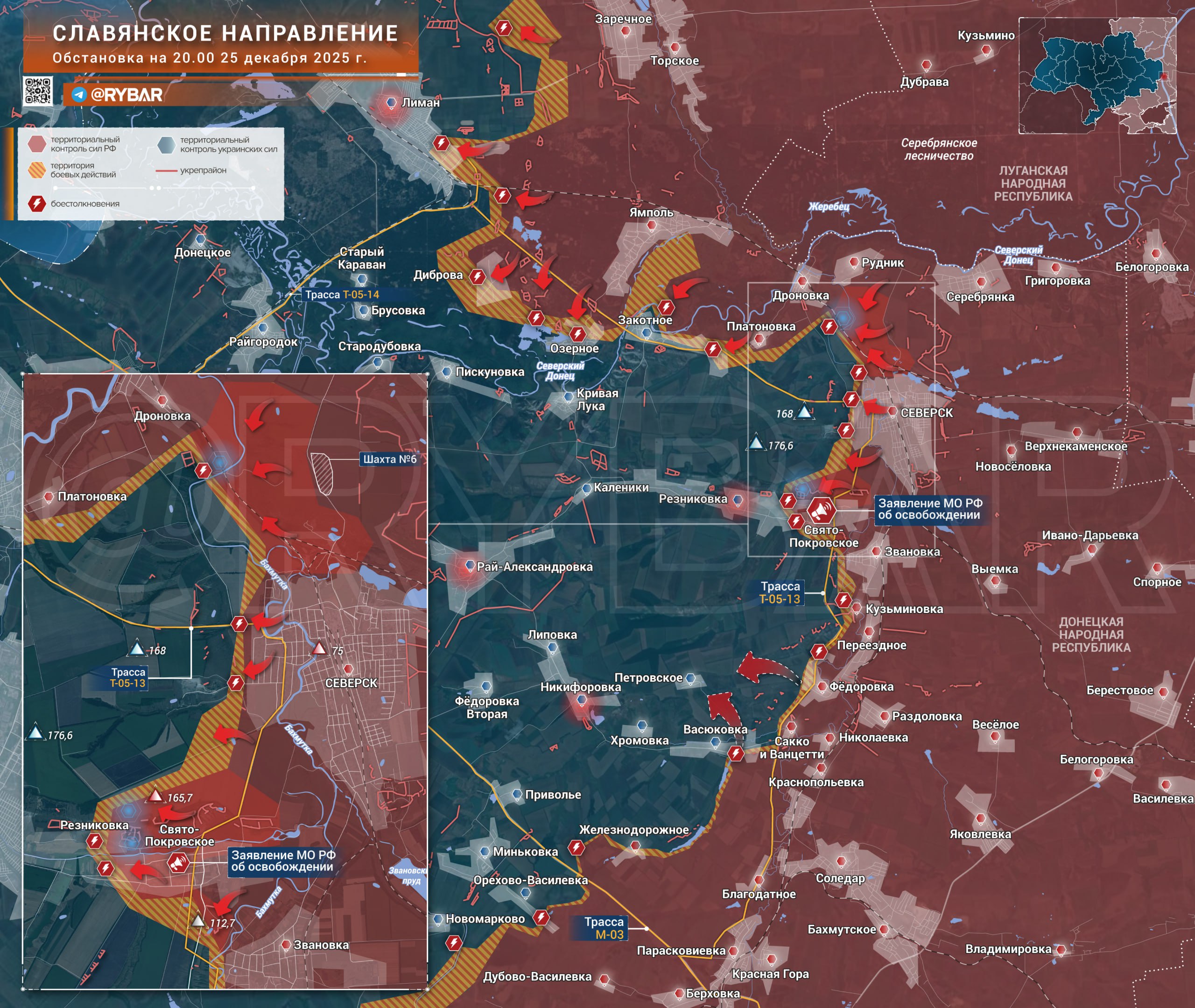 Несколько севернее идет зачистка «карманов», где украинские формирования оказались практически заблокированы в результате наступления российских войск как на этом, так и на соседнем Лиманском направлении.