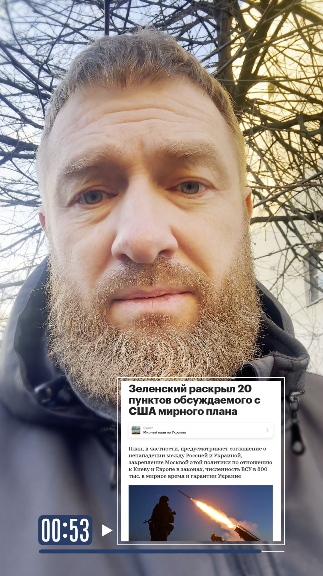 Озвученный Зеленским «мирный план» из двадцати пунктов —список односторонних требований проигрывающей стороны: Украина не признаёт новых территориальных реалий, настаивает на сохранении армии в 800 тысяч человек, требует гарантий безопасности от США и НАТО и одновременно ждёт от России уступок, денег и прекращения огня.