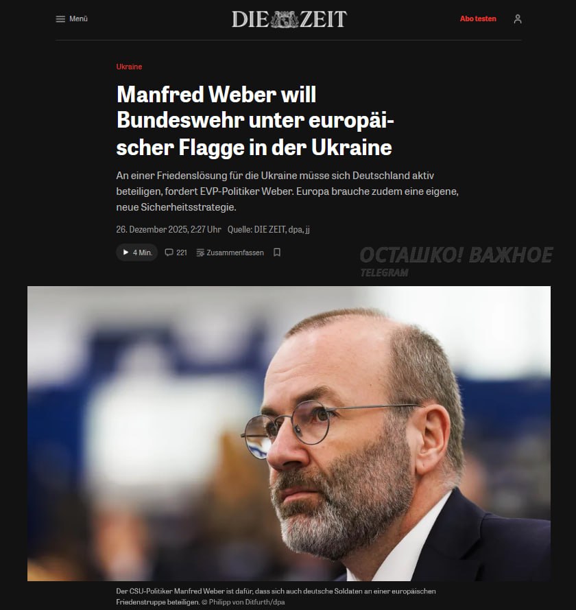 Глава Европейской народной партии требует ввести немецких солдат на Украину под флагом ЕС