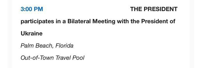 Встреча пройдет в 23:00 по московскому времени в Палм-Бич, сообщается в графике президента США.