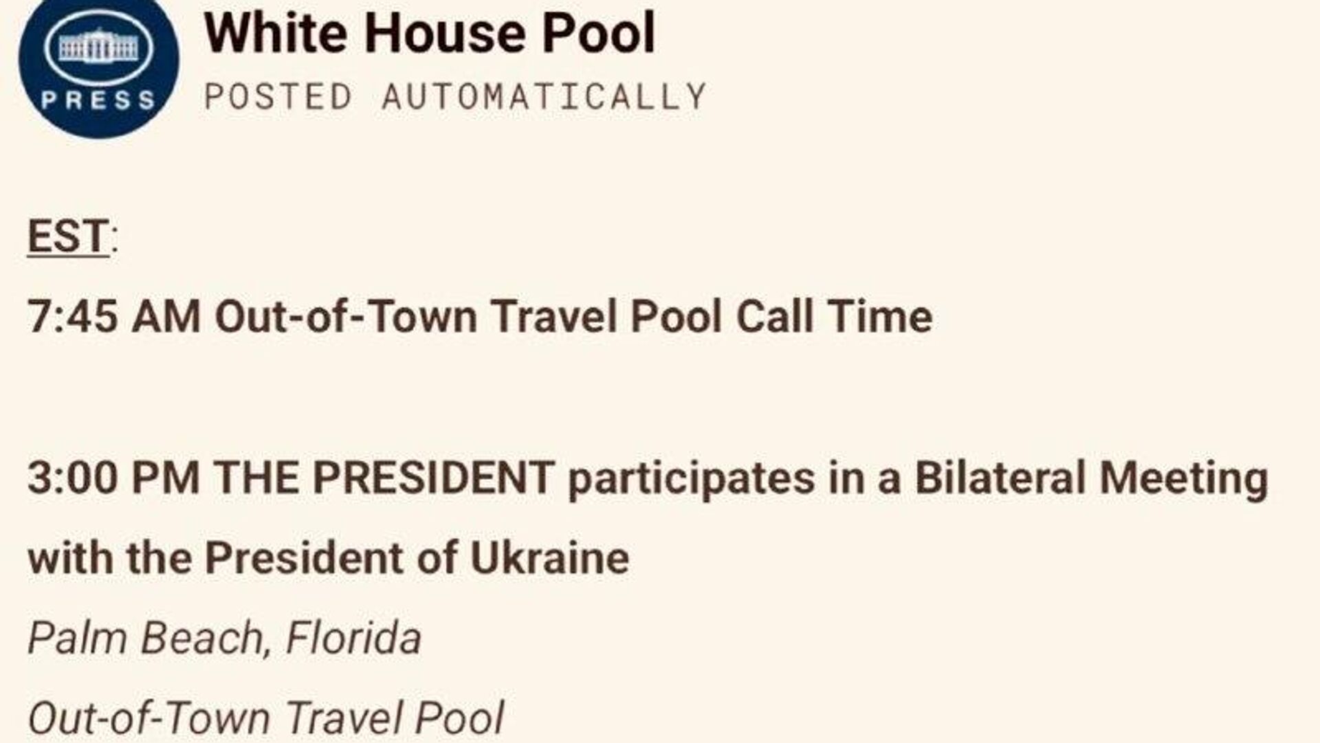 Белый дом подтвердил, что Трамп в воскресенье встретится с Зеленским в Палм-Бич во Флориде в 23:00 мск (15:00 по местному времени)