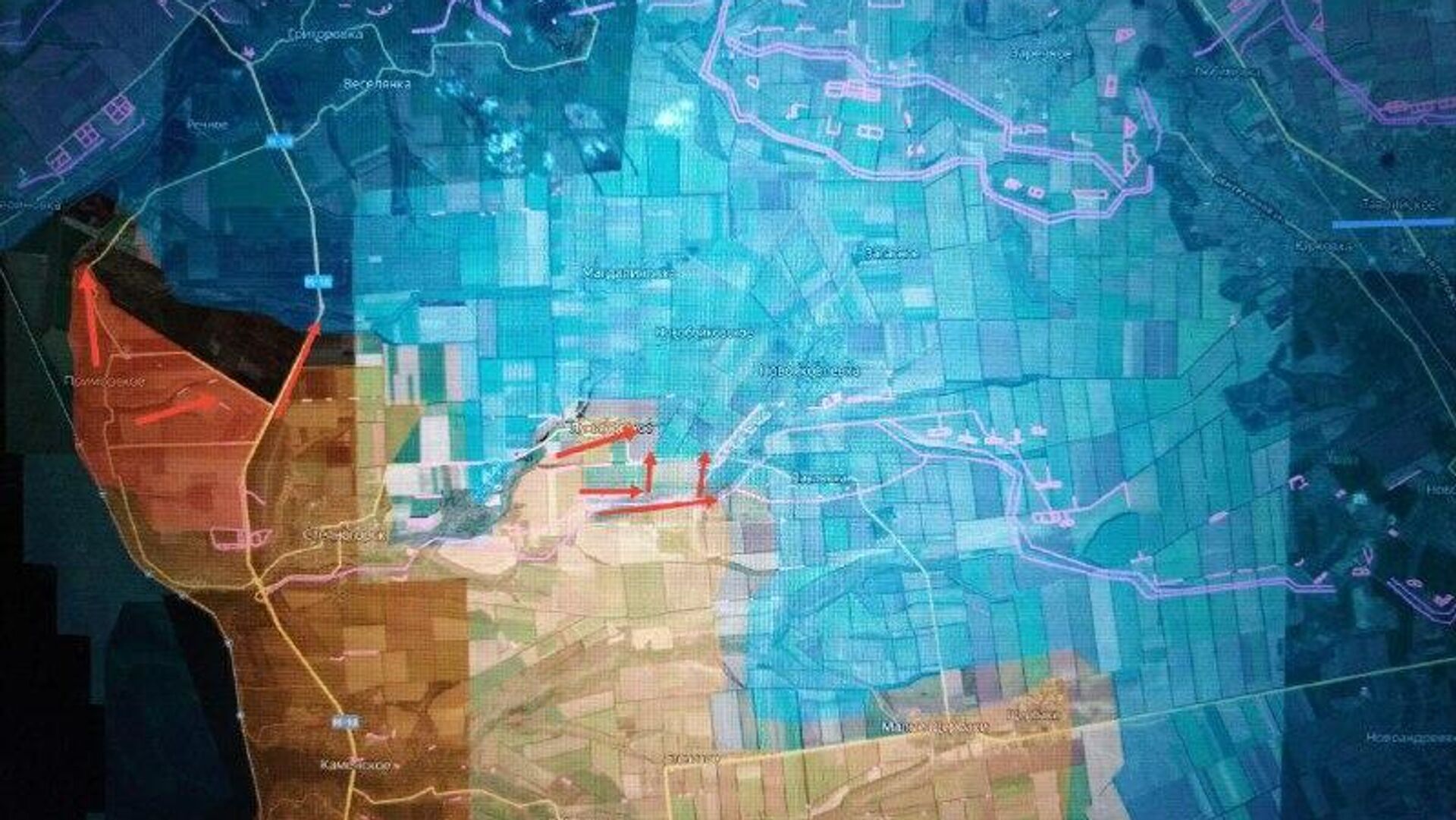 Восточнее штурмовые группы выбили украинские формирования из ряда опорных пунктов второго оборонительного рубежа и продвигаются вдоль него к Павловке и Новояковлевке, угрожая выходом во фланг и тыл Ореховскому оборонительному району Вооруженных сил Украины (ВСУ).