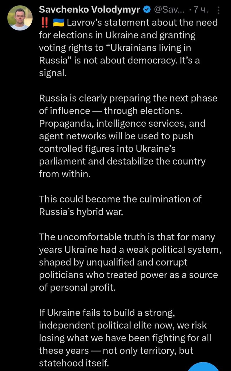 Владимир Савченко, один из таких аналитиков написал, что надо очень опасаться попыток России протолкнуть своих политиков во власть на следующих выборах.