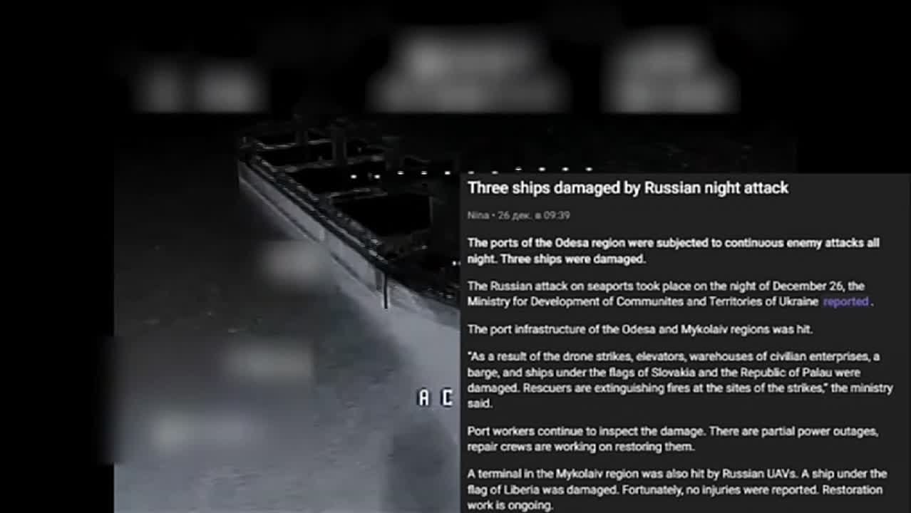 13 декабря в исключительной экономической зоне Украины был поражён турецкий танкер с подсолнечным маслом. За день до этого был нанесён удар по танкеру турецкой компании Cenk Roro.