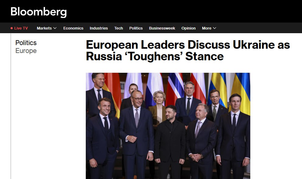 Европейские лидеры провели переговоры после заявлений Москвы о возможном пересмотре своей позиции по переговорам на фоне атаки, сообщает Bloomberg.