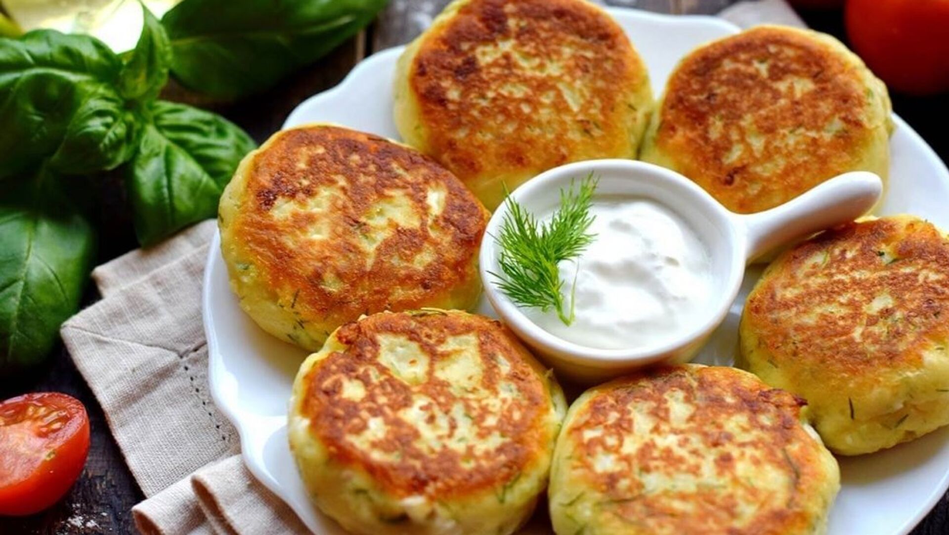Подавать горячие картопляники лучше с холодной сметаной и зеленью.