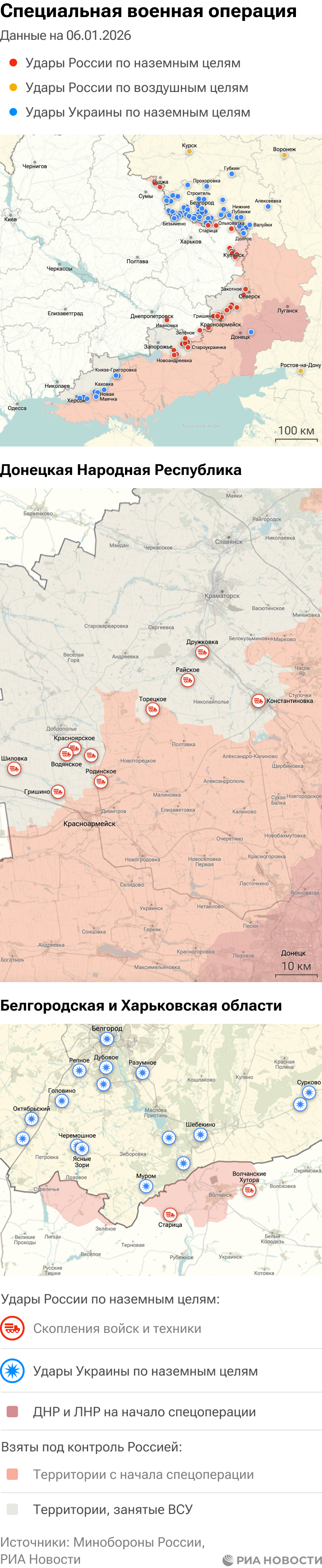 Российская армия с 24 февраля 2022 года проводит на Украине специальную военную операцию. Ее главной целью является помощь Донецкой и Луганской народным республикам, на территории которых с 2014 года не прекращались обстрелы. Перед российскими военными поставлена задача минимизировать потери личного состава и мирного населения при выполнении боевых заданий.Данные Минобороны и администраций новых регионов на 6 января 2026 года