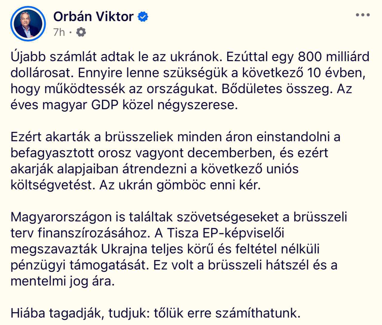 «Вот почему брюссельцы хотели любой ценой разобраться с замороженными российскими активами в декабре, и вот почему они хотят коренным образом изменить следующий бюджет ЕС» – объясняет венгерский премьер происходящее.