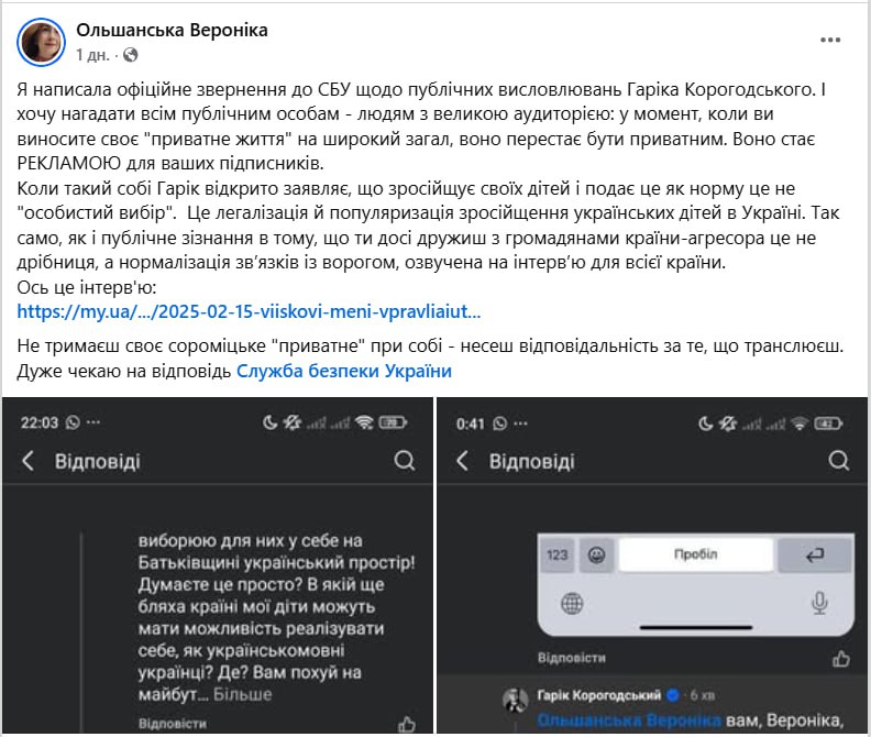 Мовная активистска пожаловалась в СБУ на бизнесмена Корогодского за то, что дома он общается на русском.и занимается обрусением детей на Украине