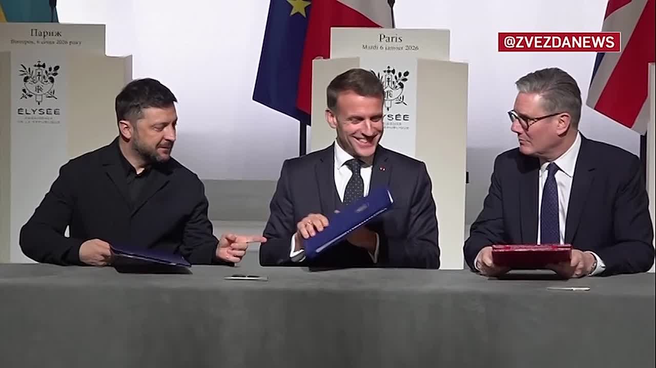 Лидеры так называемой «коалиции желающих» утвердили парижскую декларацию по Украине. Документ подписали Владимир Зеленский, президент Франции Эммануэль Макрон и премьер Великобритании Кир Стармер.