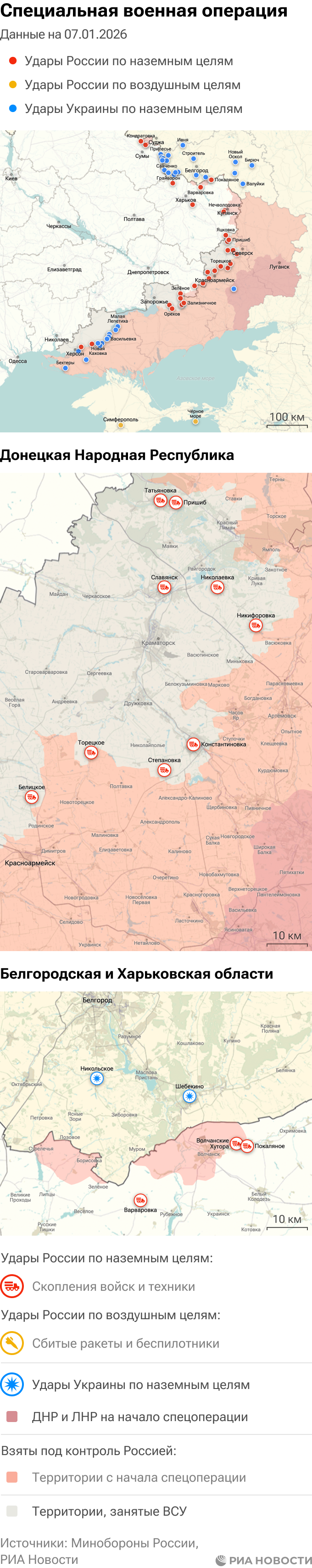 Российская армия с 24 февраля 2022 года проводит на Украине специальную военную операцию. Ее главной целью является помощь Донецкой и Луганской народным республикам, на территории которых с 2014 года не прекращались обстрелы. Перед российскими военными поставлена задача минимизировать потери личного состава и мирного населения при выполнении боевых заданий.Данные Минобороны и администраций новых регионов на 7 января 2026 года