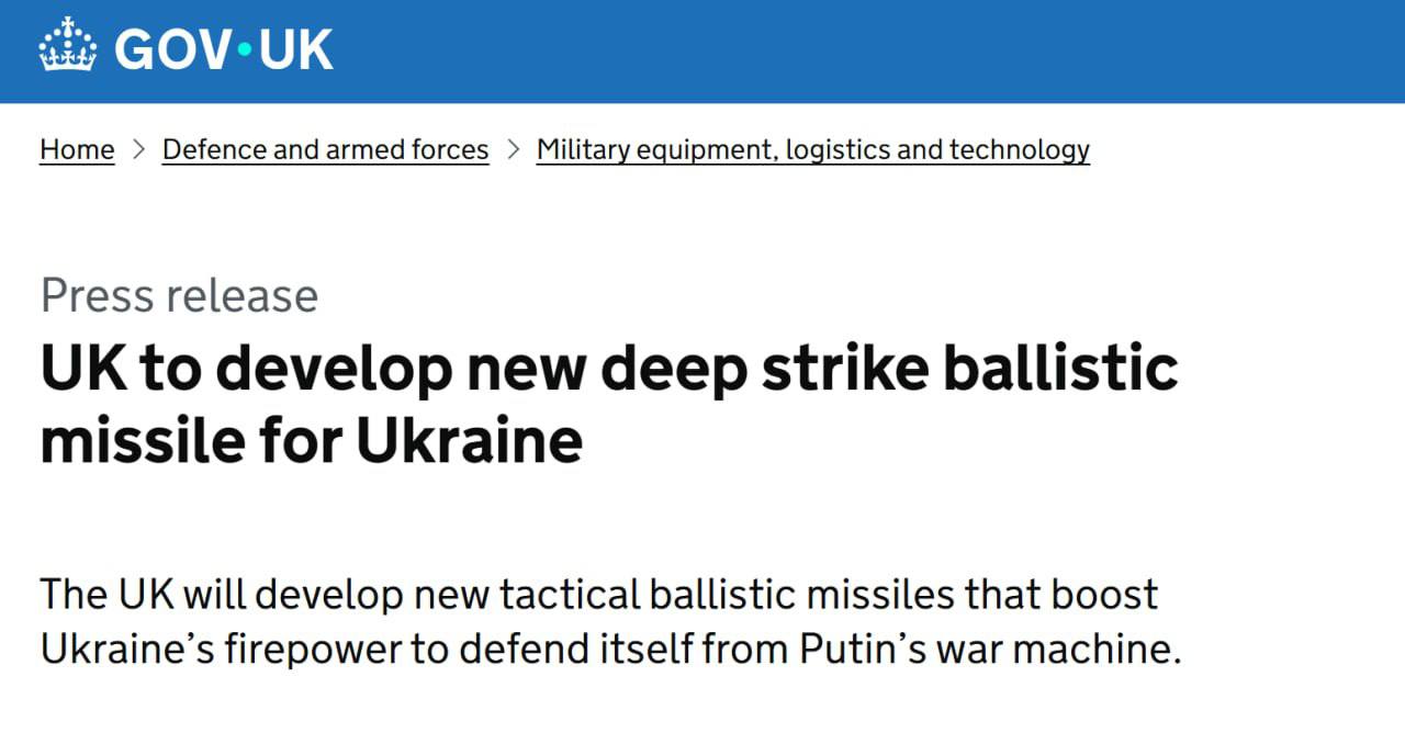 Великобритания разработает для Украины новую баллистическую ракету в рамках проекта «Nightfall»