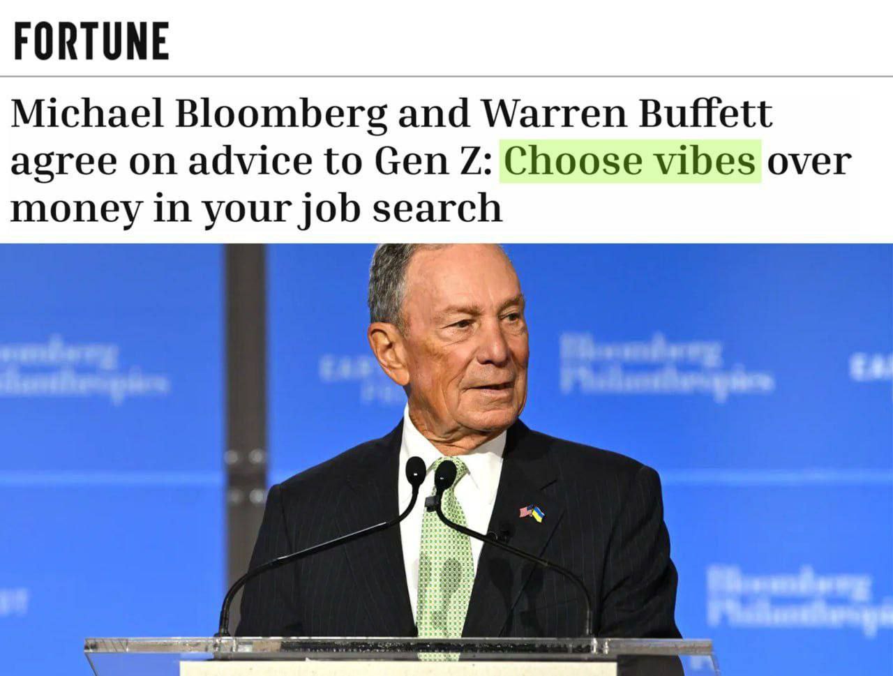 Во время поиска работы «выбирайте вайб», а не зарплату, — такой совет дали миллиардеры Майкл Блумберг и Уоррен Баффетт.