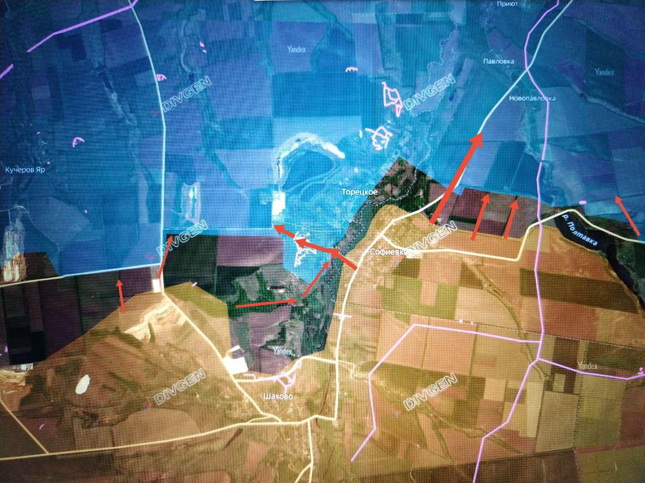 Западнее ВС РФ продвинулись в направлении Кучеров Яра со стороны Октябрьского (Шахово) и восточнее Вольного (южнее балки Великая);