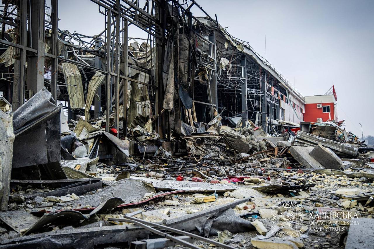 На фото — последствия ночного удара по терминалу "Новой почты" в пригороде Харькова