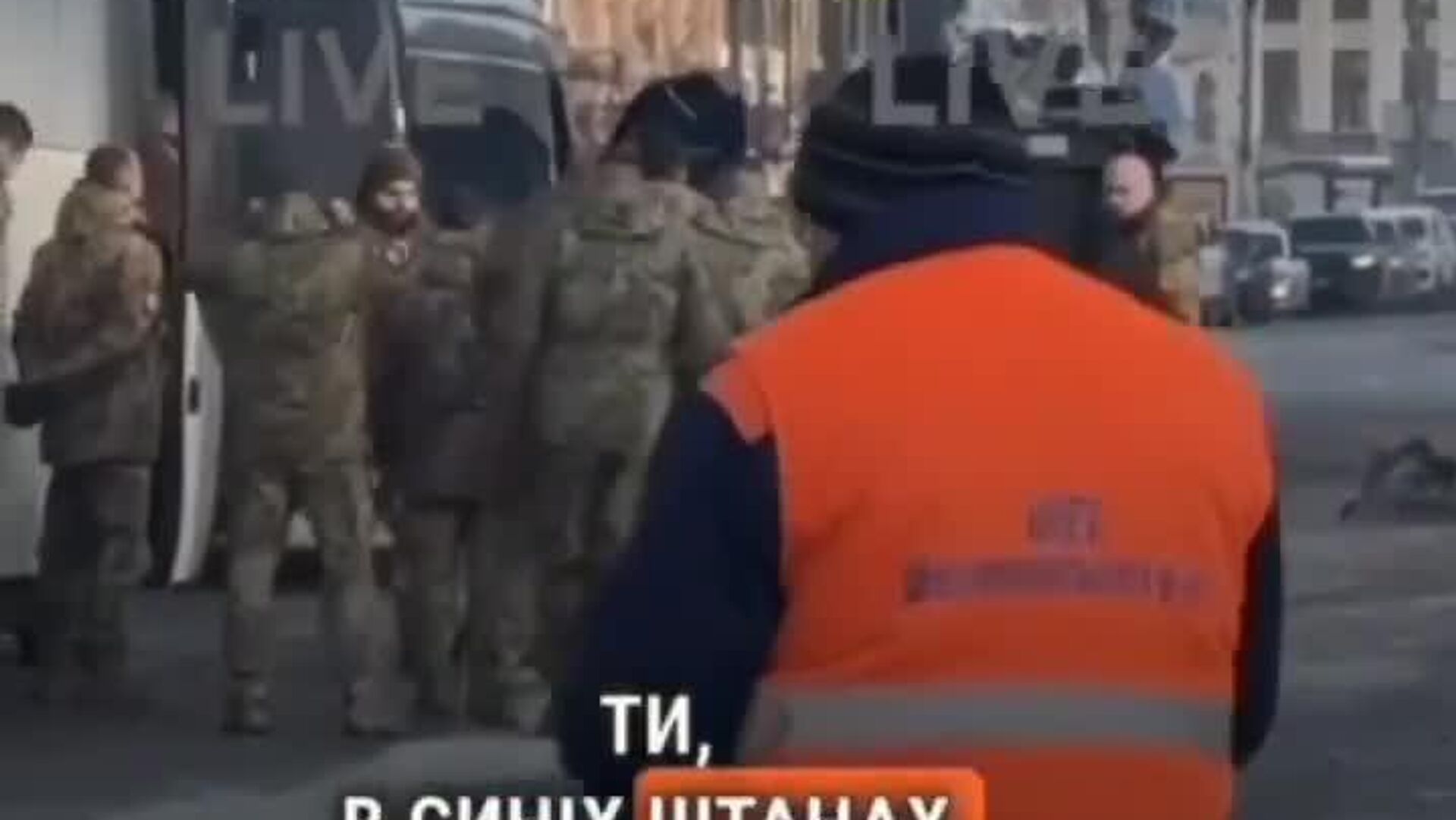 Ты, в синих штанах с сумкой красно-белой! Остановись, дятел! Ты будешь следующим. Сфотографируйте его, выложите в сеть! Все, кто движется сейчас в Киеве — это преступники, коллаборанты, москали!!! Внимание, майдан! Минута молчания по защитникам и защитницам Украины.
